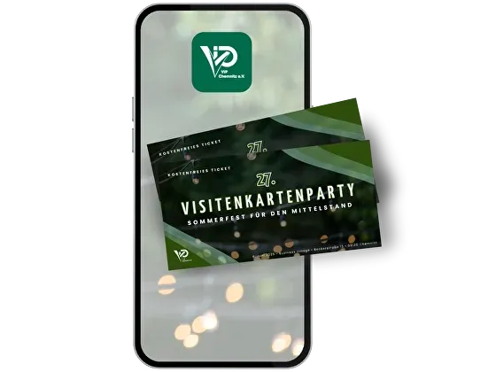 Mit unserer neuen App können Sie sich ganz bequem Ihr kostenfreies Ticket sowie ein Freigetränk für die Visitenkartenparty sichern.